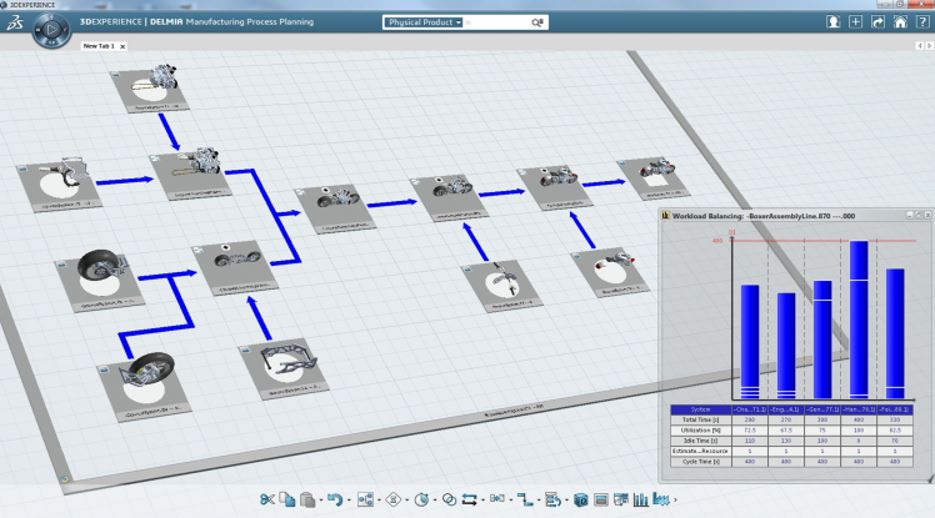 Betrachten wir den PLM Automotive Zulieferprozess (siehe Seite Was ist PLM?), so ergibt sich die Forderung nach einer homogenen Infrastruktur wie einer 3DEXPERIENCE-Plattorm für alle genannten Prozesse, basierend auf den Produkt-Modell-Daten. Beispielhaft sehen wir die Fertigungsprozessplanung. Die wichtigsten Teilschritte in der Fertigungsplanung basieren auf: